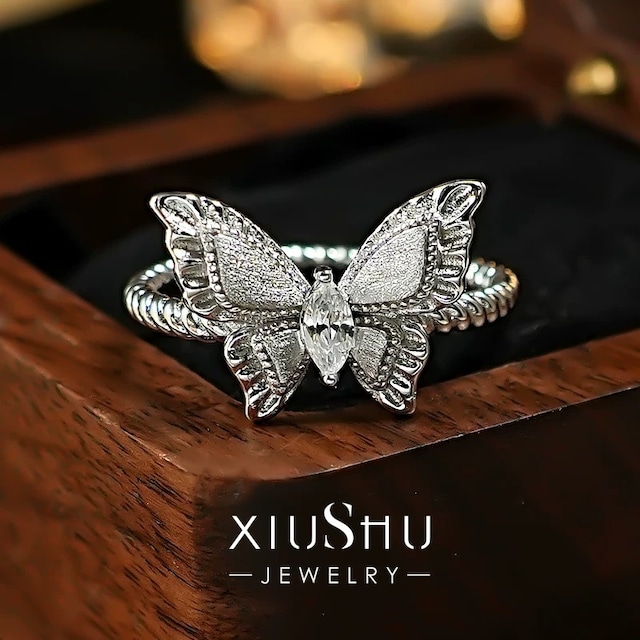 バタフライ 高炭素ダイヤモンド キラキラ ゴージャス 蝶々 シルバー リング 指輪