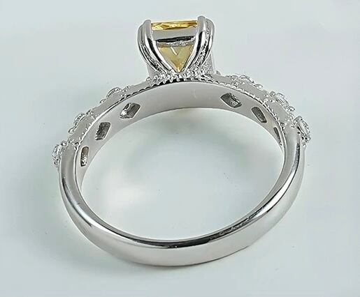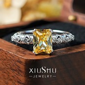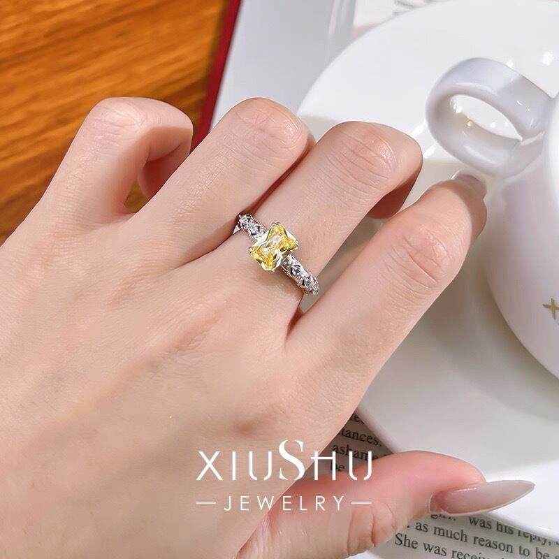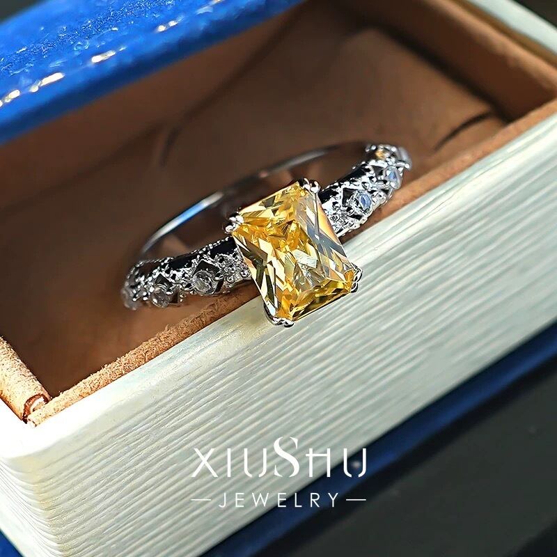 イエロー ミル打ち 高炭素ダイヤモンド キラキラ ゴージャス 指輪 ハイカーボンダイヤモンド シルバー925 リング 長方形 イエロー レトロ ワイドリング | キラキラゴージャスジュエリーのXIUSHU(シュシュ)