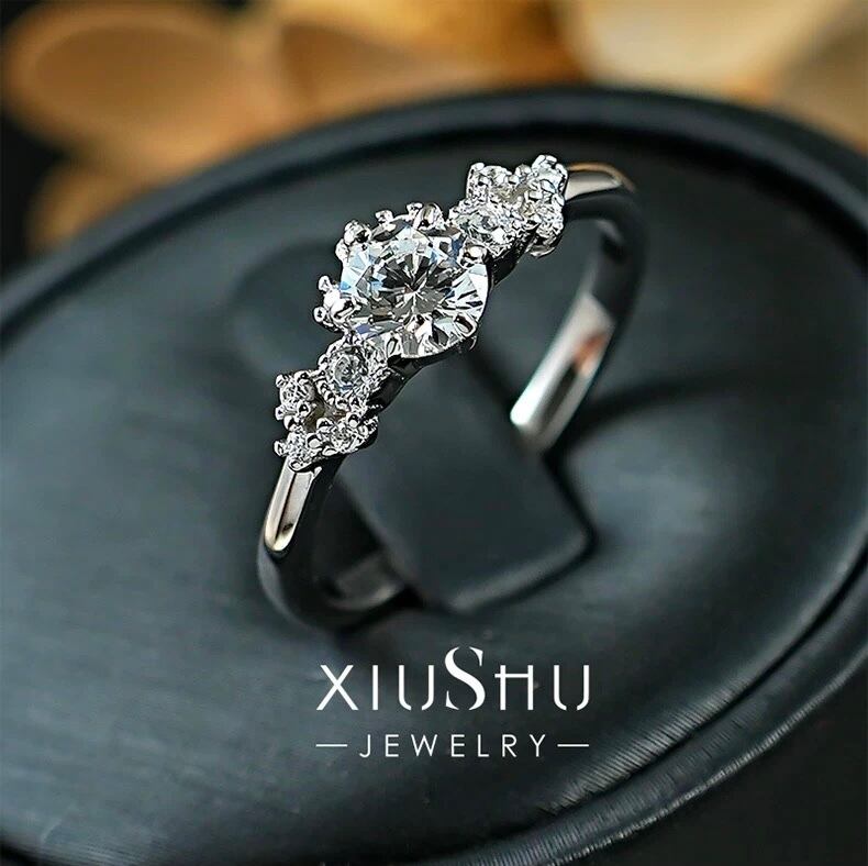 ラウンド クラウン 高炭素ダイヤモンド キラキラ ゴージャス 指輪 ハイカーボンダイヤモンド シルバー925 リング レトロ 小さい 小さめ ミニ シンプル 王冠 ホワイト ミル打ち | キラキラゴージャスジュエリーのXIUSHU(シュシュ)
