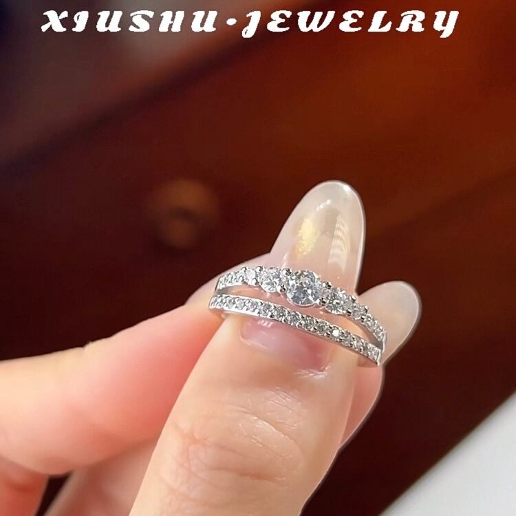 ラウンド 二連リング 高炭素ダイヤモンド キラキラ ゴージャス 指輪 ハイカーボンダイヤモンド シルバー925 ホワイト リング 小さめ クール 2連 | キラキラゴージャスジュエリーのXIUSHU(シュシュ)