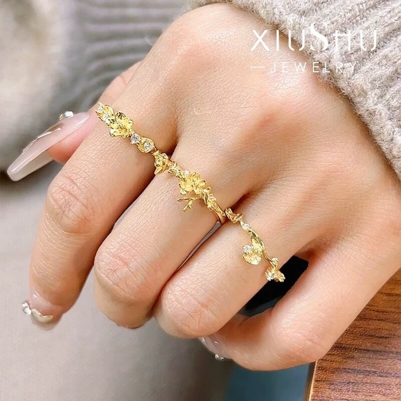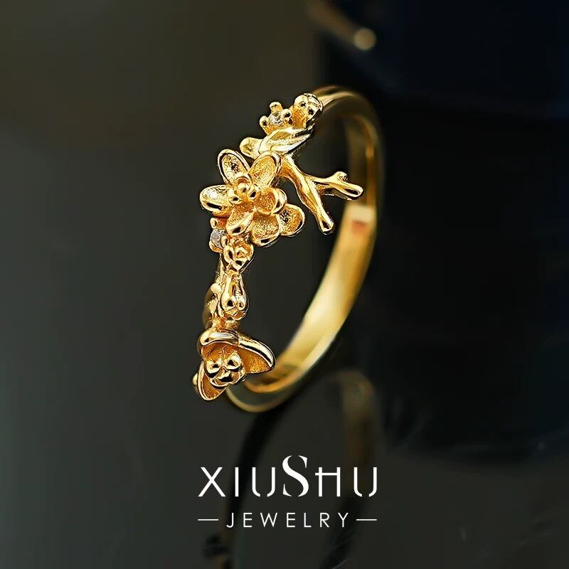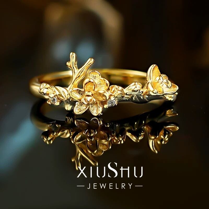 梅の花 高炭素ダイヤモンド キラキラ 立体的 3D ゴージャス ホワイト 指輪 ハイカーボンダイヤモンド シルバー925 リング レトロ イエローゴールド フラワー 花 春 華やか 枝 | キラキラゴージャスジュエリーのXIUSHU(シュシュ)