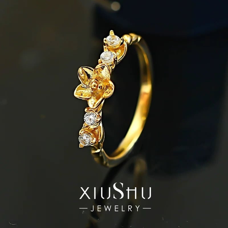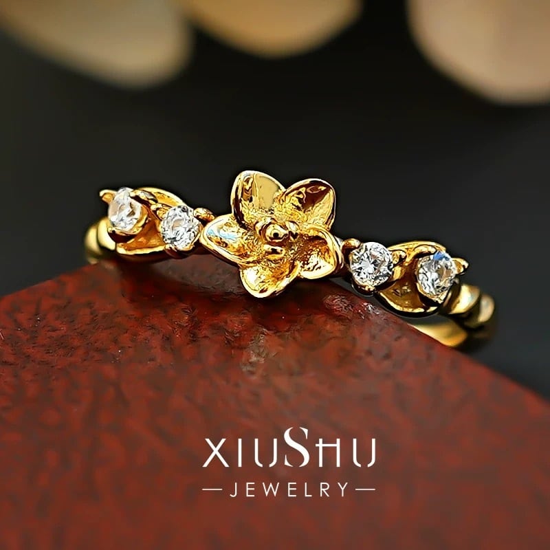 桜 花 高炭素ダイヤモンド キラキラ 立体的 3D ゴージャス ホワイト 指輪 ハイカーボンダイヤモンド シルバー925 リング レトロ イエローゴールド フラワー 春 華やか さくら サクラ 花びら | キラキラゴージャスジュエリーのXIUSHU(シュシュ)