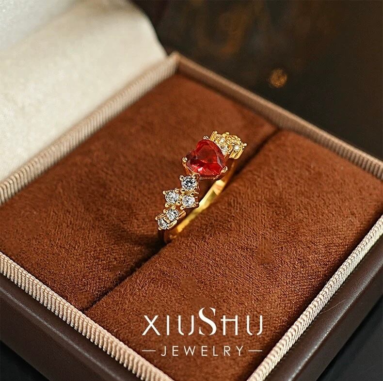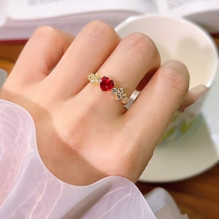 ハート 人工ルビー 高炭素ダイヤモンド キラキラ ゴージャス 指輪 ハイカーボンダイヤモンド シルバー925 レトロ イエローゴールド レッド 赤 バレンタイン 大人かわいい 可愛い | キラキラゴージャスジュエリーのXIUSHU(シュシュ)