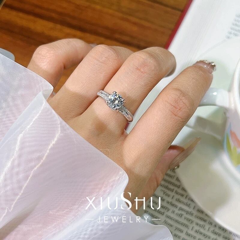 ラウンド 高炭素ダイヤモンド ホワイト キラキラ ゴージャス 指輪 リング ハイカーボンダイヤモンド シルバー925 クラシック エンゲージリング メレタイプ ワイドリング | キラキラゴージャスジュエリーのXIUSHU(シュシュ)