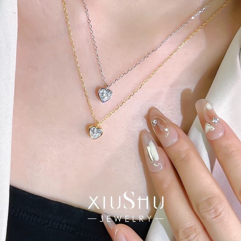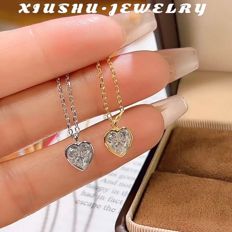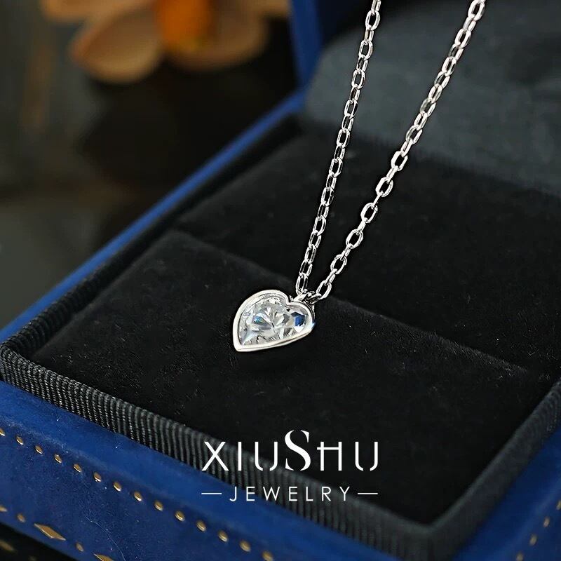 ハート 高炭素ダイヤモンド ホワイト キラキラ ゴージャス ソリティアネックレス ハイカーボンダイヤモンド シルバー925 一粒 1粒 ベゼルセッティング シンプル 大人かわいい 可愛い バレンタイン | キラキラゴージャスジュエリーのXIUSHU(シュシュ)
