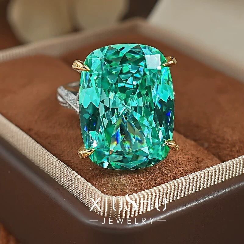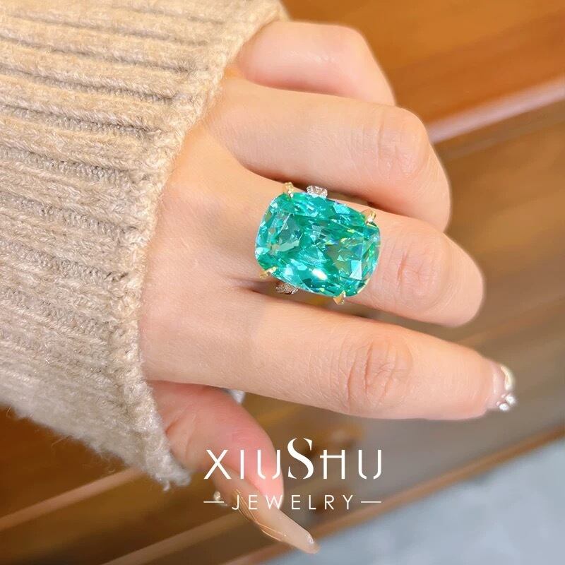 21ct 人工パライバトルマリン 高炭素ダイヤモンド ホワイト キラキラ ゴージャス 指輪 リング ハイカーボンダイヤモンド シルバー925 カラフル 大きい ビッグ グリーン 緑 スーパーラージ ラグジュアリー