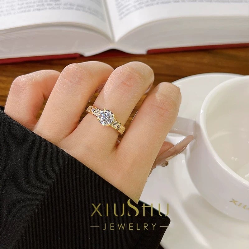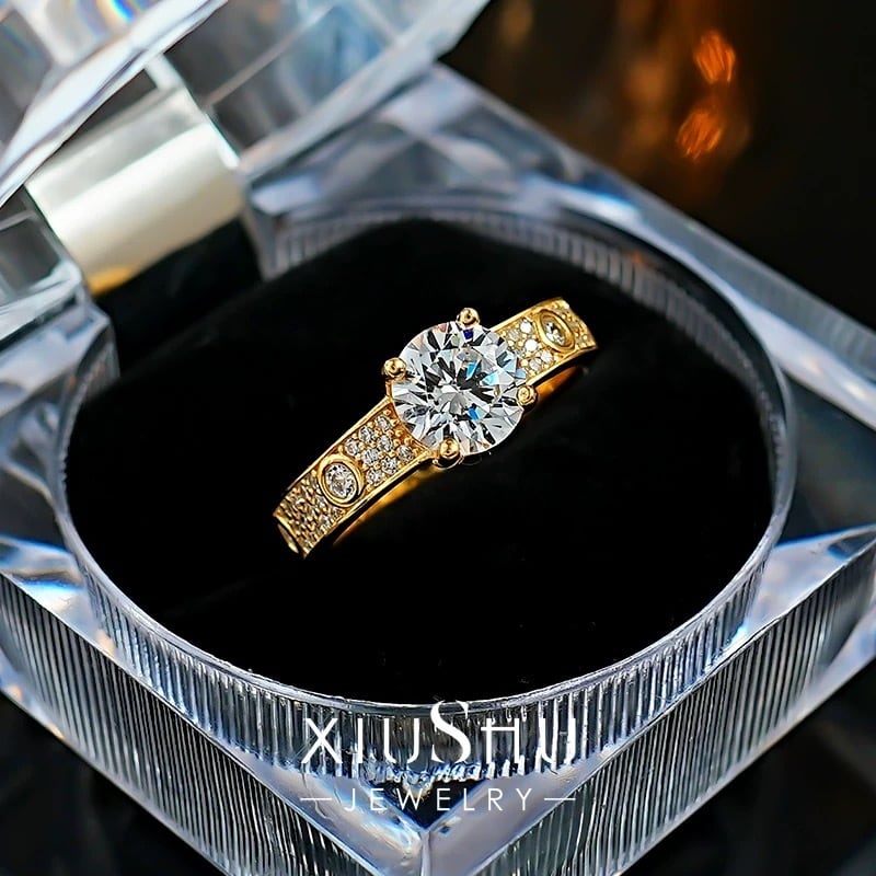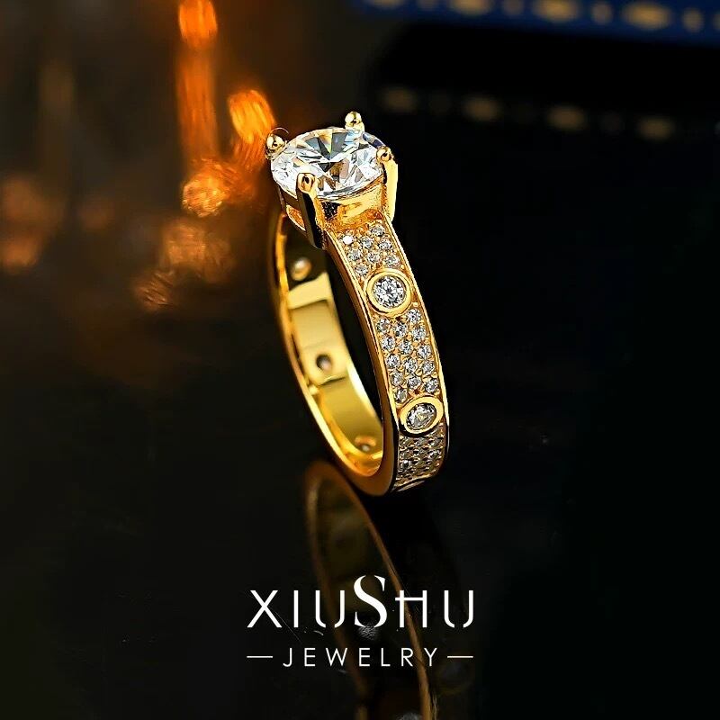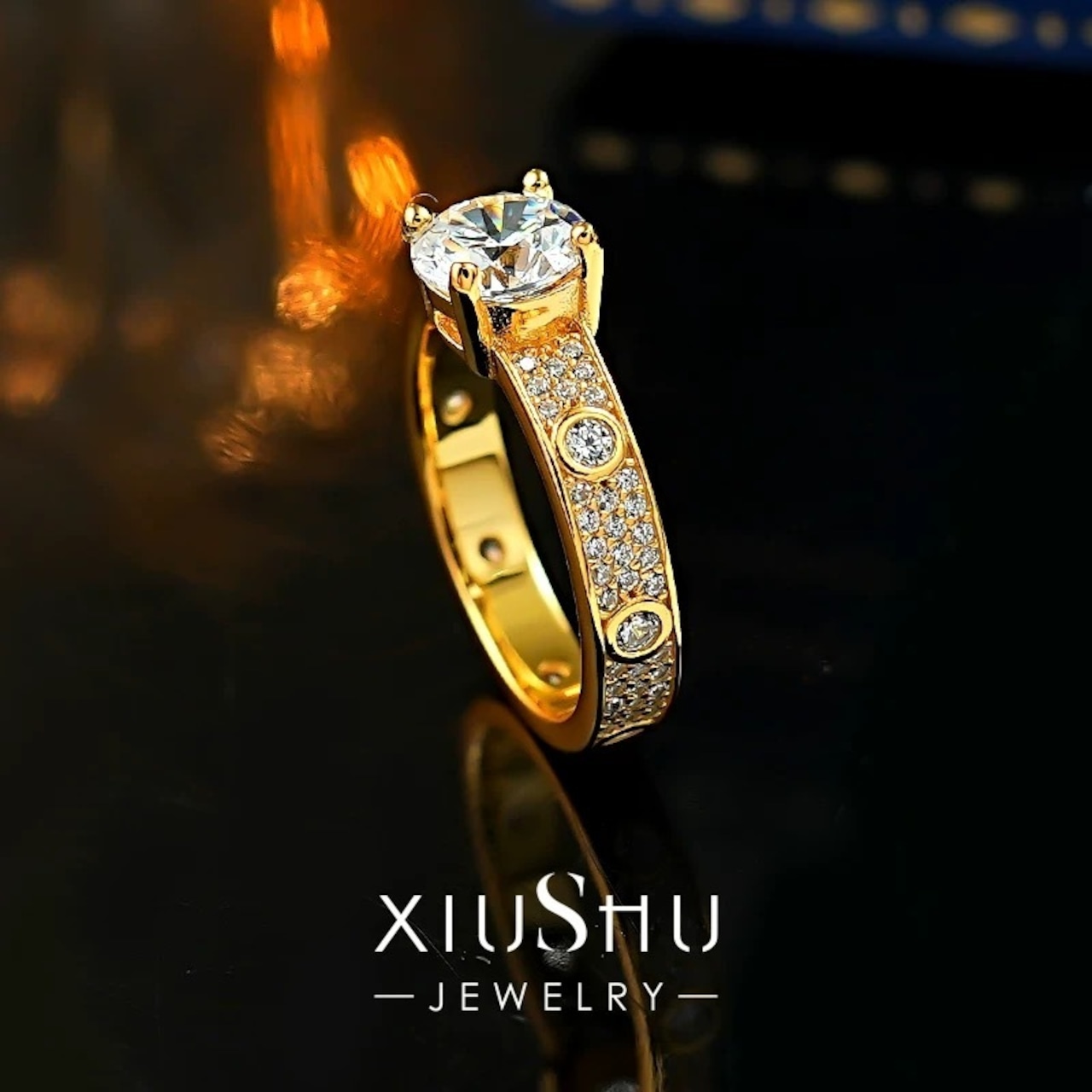 ラウンド 中世スタイル 高炭素ダイヤモンド ホワイト キラキラ ゴージャス 指輪 リング ハイカーボンダイヤモンド シルバー925 クール イエローゴールド メレタイプ ワイドリング | キラキラゴージャスジュエリーのXIUSHU(シュシュ)