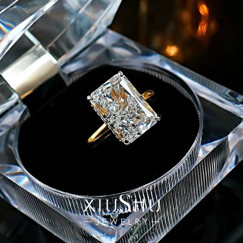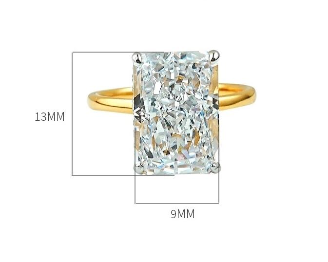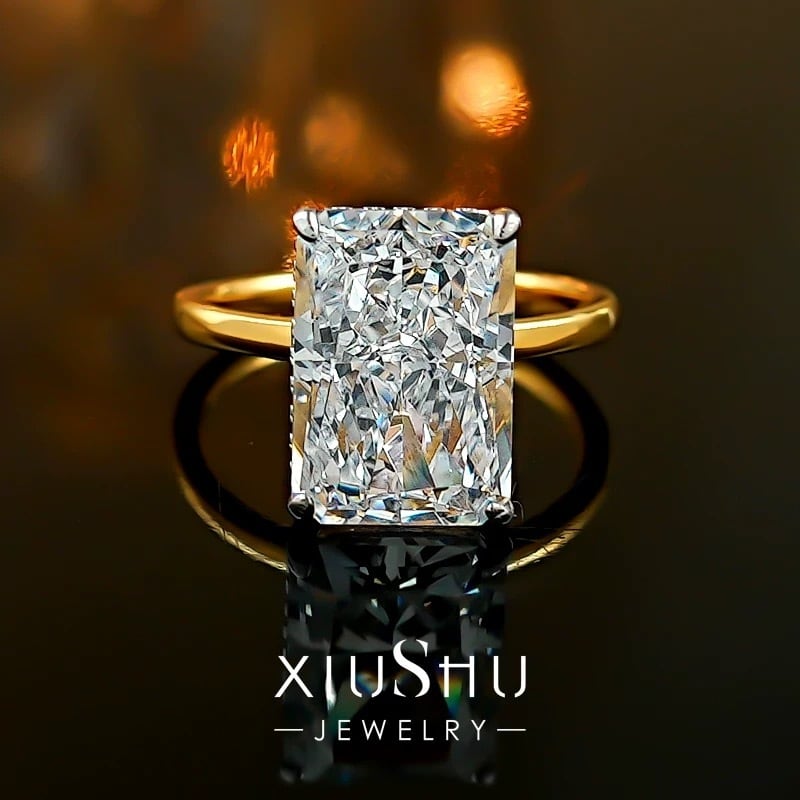 8ct ラディアントカット 高炭素ダイヤモンド ホワイト キラキラ ゴージャス 指輪 ソリティアリング ハイカーボンダイヤモンド ビッグ シルバー925 クール 1粒 一粒 大きめ 長方形 イエローゴールド | キラキラゴージャスジュエリーのXIUSHU(シュシュ)