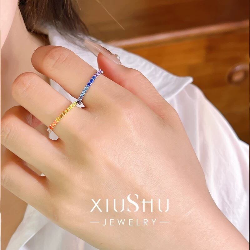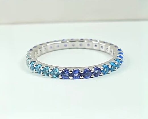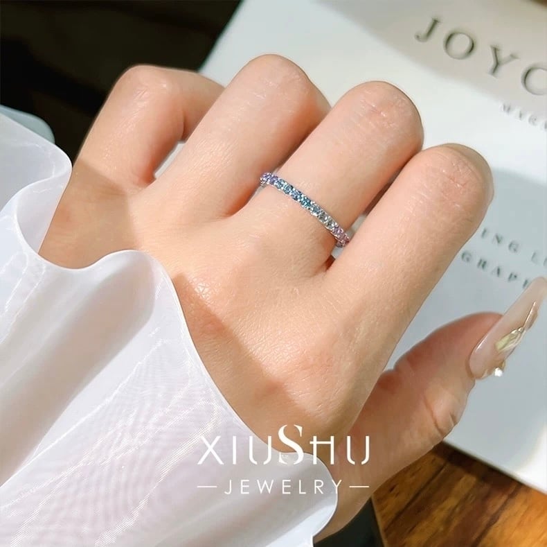 「モネの庭」 ブルー パープル ラウンド エタニティリング 高炭素ダイヤモンド キラキラ ゴージャス 指輪 リング ハイカーボンダイヤモンド シルバー925 リング ウェディング シンプル カラフル シンプル 青 紫 レトロ | キラキラゴージャスジュエリーのXIUSHU(シュシュ)