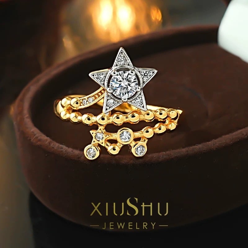 スター ボール 高炭素ダイヤモンド ホワイト キラキラ ゴージャス 指輪 リング ハイカーボンダイヤモンド シルバー925 イエローゴールド レトロ ポップ 星 大人可愛い かわいい | キラキラゴージャスジュエリーのXIUSHU(シュシュ)