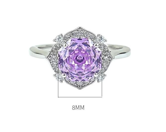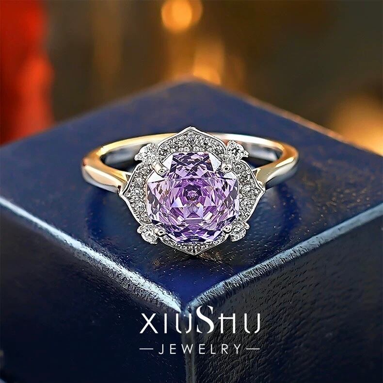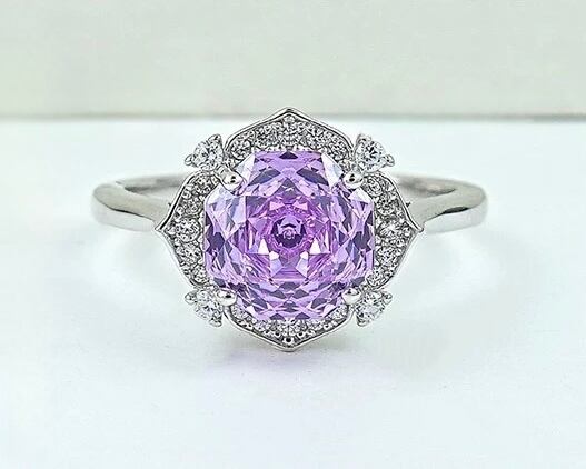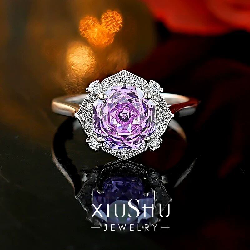 ローズ パープル 高炭素ダイヤモンド キラキラ ゴージャス リング フラワー フラワー 花 バラ 薔薇 指輪 紫 華やか シルバー925 指輪 ヘイローリング 春 カラフル | キラキラゴージャスジュエリーのXIUSHU(シュシュ)