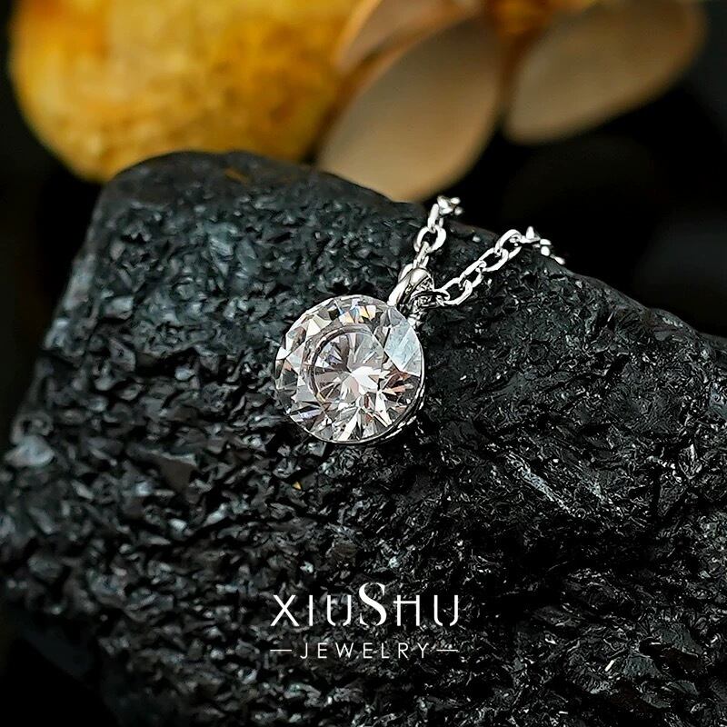 ラウンド 高炭素ダイヤモンド ホワイト キラキラ ゴージャス ソリティアネックレス ハイカーボンダイヤモンド シルバー925 一粒 1粒 シンプル 小さい 小さめ ミニ アート 彫刻