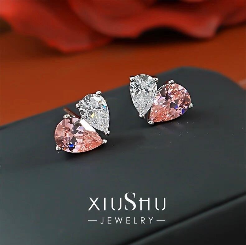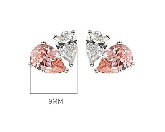 人工パパラチアサファイア ピンク 高炭素ダイヤモンド ホワイト キラキラ ゴージャス ハイカーボンダイヤモンド シルバー925 スタッドピアス ペアシェイプ 大人可愛い かわいい ドロップ ダブルストーン | キラキラゴージャスジュエリーのXIUSHU(シュシュ)