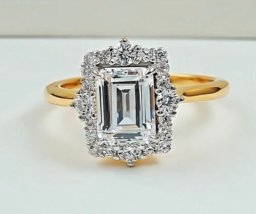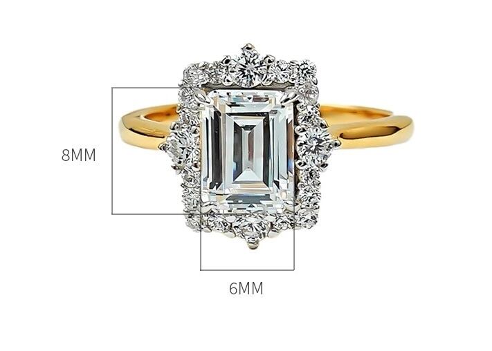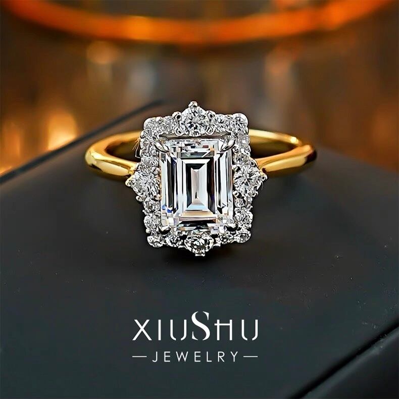 氷河の秘密 エメラルドカット 高炭素ダイヤモンド ホワイト キラキラ ゴージャス 指輪 リング ハイカーボンダイヤモンド シルバー925 メレタイプ ラグジュアリー イエローゴールドメッキ レトロ ヘイローリング | キラキラゴージャスジュエリーのXIUSHU(シュシュ)