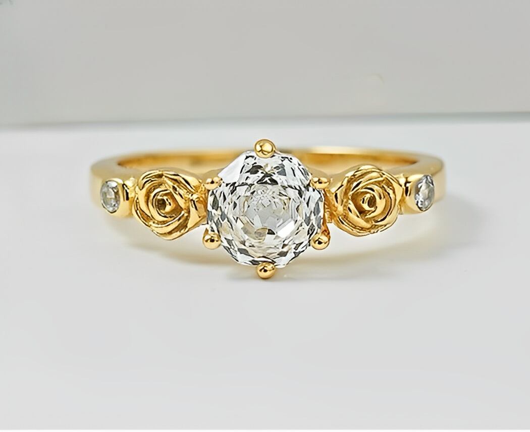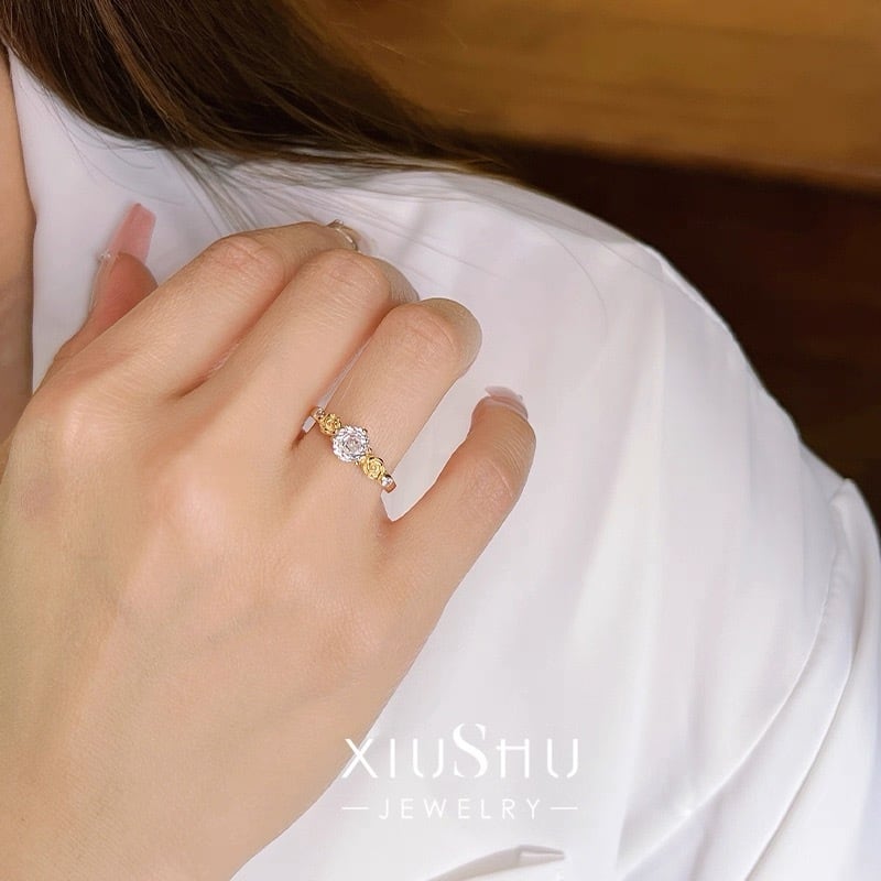 「True Love Rose」ミレニアムローズカット バラ 薔薇 高炭素ダイヤモンド ホワイト キラキラ ゴージャス 指輪 リング ハイカーボンダイヤモンド シルバー925 レトロ イエローゴールドメッキ フラワー 花 華やか | キラキラゴージャスジュエリーのXIUSHU(シュシュ)