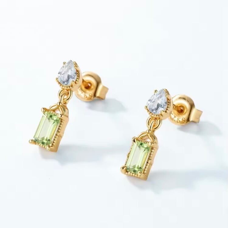 人工ペリドット クリスタル 高炭素ダイヤモンド ホワイト キラキラ ゴージャス ハイカーボンダイヤモンド シルバー925 スタッドピアス ペアシェイプ 大人可愛い かわいい ドロップ ダブルストーン レトロ ミル打ち グリーン 緑 ゴールドメッキ | キラキラゴージャスジュエリーのXIUSHU(シュシュ)