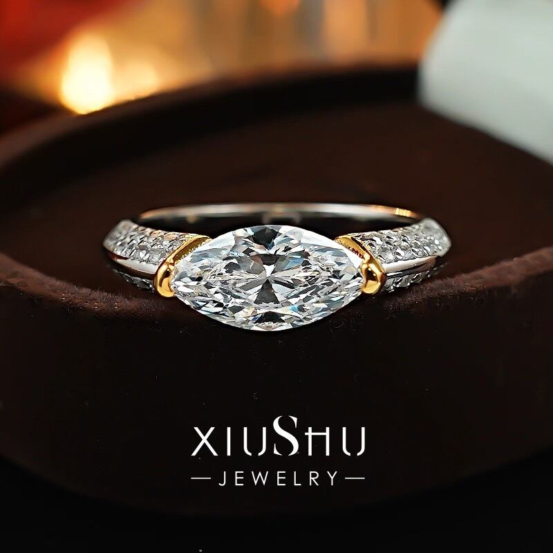 マーキス 高炭素ダイヤモンド ホワイト キラキラ ゴージャス 指輪 リング ハイカーボンダイヤモンド シルバー925 メレタイプ ワイドリング 大きめ ビッグ クール かっこいい イエローゴールド | キラキラゴージャスジュエリーのXIUSHU(シュシュ)