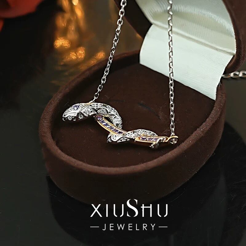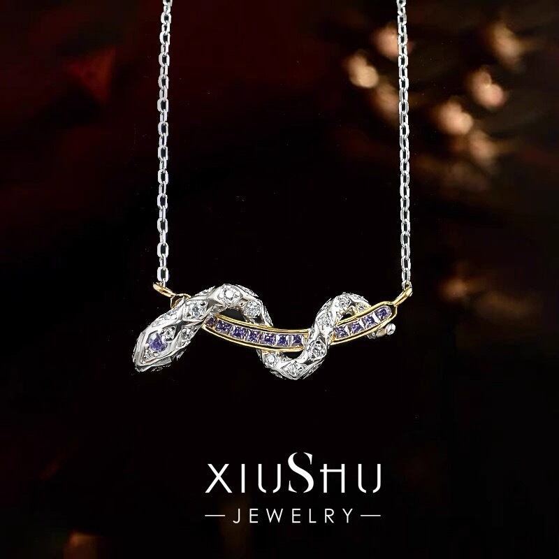 スネーク パープル 高炭素ダイヤモンド ホワイト キラキラ ゴージャス ネックレス ハイカーボンダイヤモンド シルバー925 クール かっこいい レトロ 蛇 へび ヘビ 紫 イエローゴールド メンズ レディース | キラキラゴージャスジュエリーのXIUSHU(シュシュ)