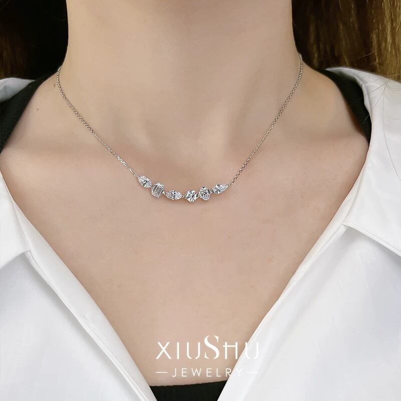 高炭素ダイヤモンド ホワイト キラキラ ゴージャス ハーフエタニティネックレス ハイカーボンダイヤモンド シルバー925 ラウンド ペアシェイプ オーバル マーキス ドロップ 長方形 高級感 | キラキラゴージャスジュエリーのXIUSHU(シュシュ)