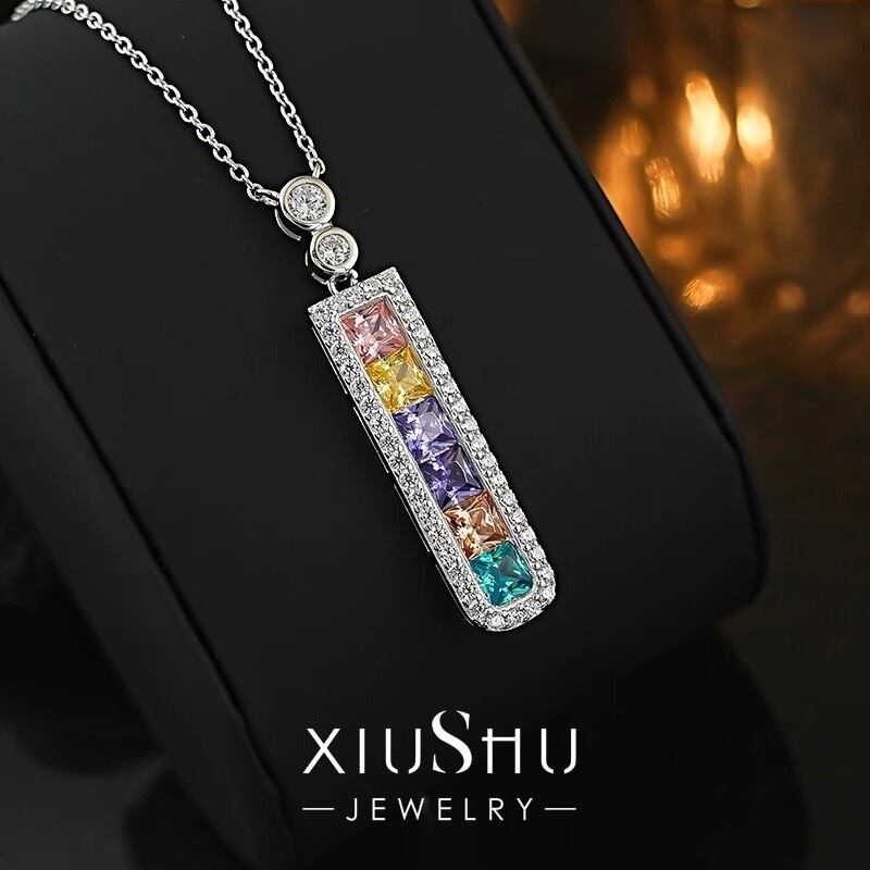 カラフル Y字 高炭素ダイヤモンド キラキラ ゴージャス ネックレス ハイカーボンダイヤモンド シルバー925 レトロ メレタイプ 華やか ピンク イエロー パープル グリーン ブルー オレンジ ホワイト | キラキラゴージャスジュエリーのXIUSHU(シュシュ)