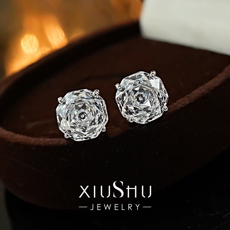 ミレニアムローズカット ラウンド 高炭素ダイヤモンド キラキラ ゴージャス ソリティアピアス ハイカーボンダイヤモンド シルバー925 一粒 1粒 スタッドピアス シンプル バラ 薔薇 フラワー 花 レトロ ホワイト 白 | キラキラゴージャスジュエリーのXIUSHU(シュシュ)