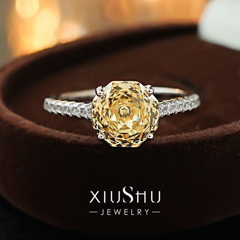 ミレニアムローズカット ラウンド 高炭素ダイヤモンド キラキラ ゴージャス ハイカーボンダイヤモンド シルバー925 一粒 1粒 リング シンプル カラフル バラ 薔薇 フラワー 花 レトロ 黄色 指輪 メレタイプ | キラキラゴージャスジュエリーのXIUSHU(シュシュ)