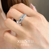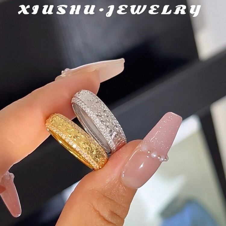 スパークル シルバー 高炭素ダイヤモンド ホワイト キラキラ ゴージャス 指輪 リング ハイカーボンダイヤモンド シルバー925 レトロ ワイドリング ヒップホップ かっこいい クール メレタイプ | キラキラゴージャスジュエリーのXIUSHU(シュシュ)