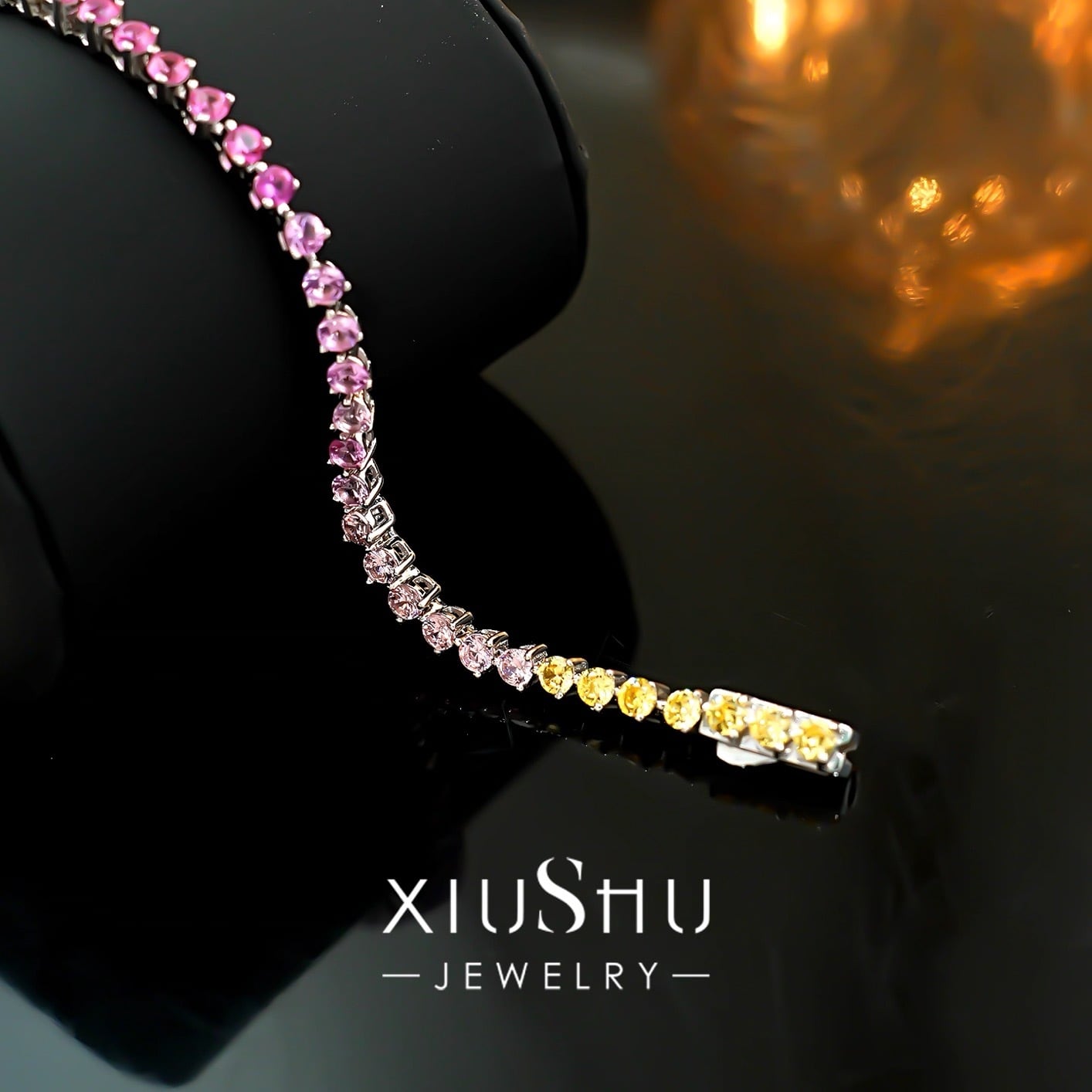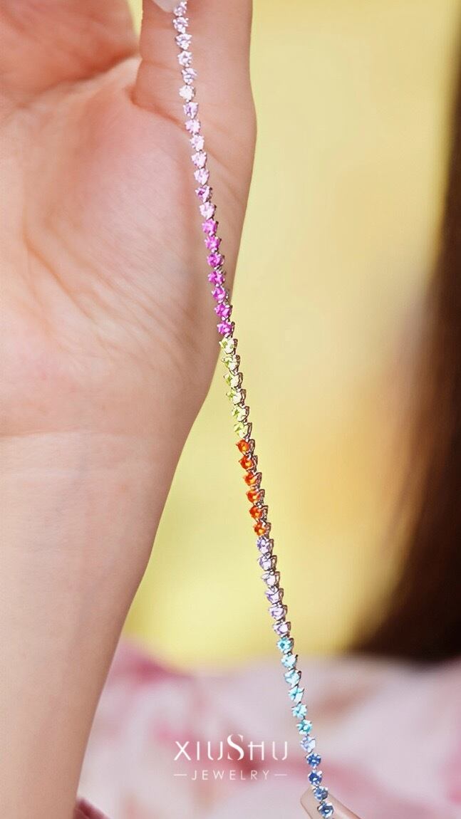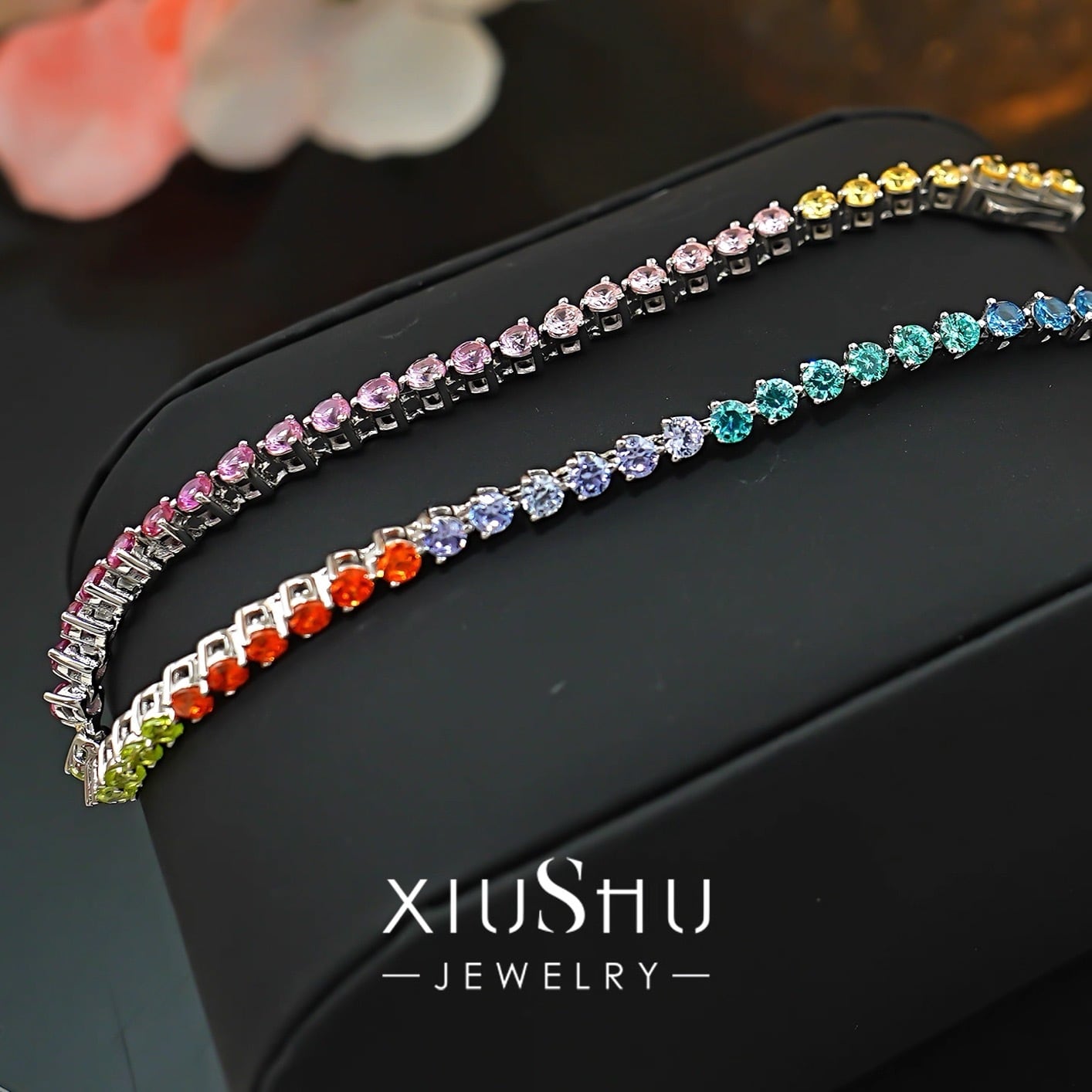 ラウンド レインボー エタニティブレスレット ラグジュアリー 高炭素ダイヤモンド キラキラ ゴージャス ラグジュアリー ホワイト シルバー925 高炭素ダイヤモンド レトロ 普段使い カラフル | キラキラゴージャスジュエリーのXIUSHU(シュシュ)