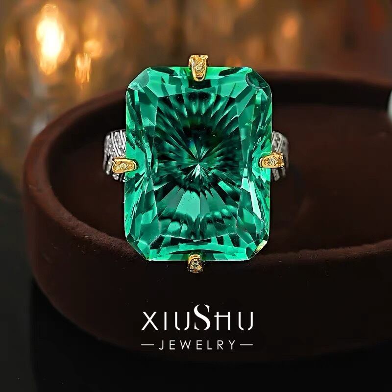 21ct 人工パライバトルマリン 高炭素ダイヤモンド ホワイト キラキラ ゴージャス 指輪 リング ハイカーボンダイヤモンド シルバー925 カラフル 大きい ビッグ グリーン 緑 スーパーラージ ラグジュアリー メレタイプ クール かっこいい