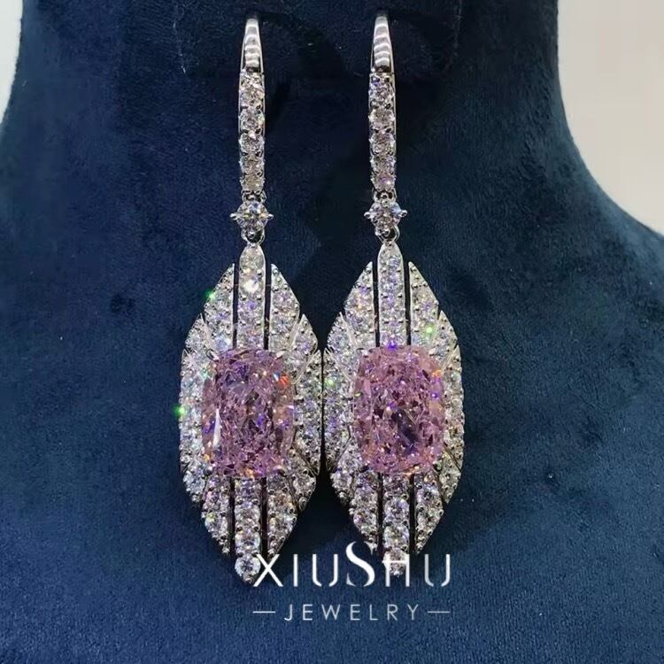 6ct オーバル ピンク マーキス 高炭素ダイヤモンド ホワイト キラキラ ゴージャス ヘイローピアス ハイカーボンダイヤモンド シルバー925 レトロ メレタイプ パヴェ フックピアス ラグジュアリー クール かっこいい