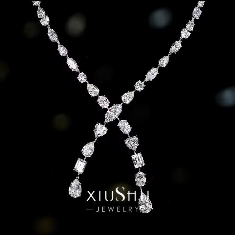 高炭素ダイヤモンド ホワイト キラキラ ゴージャス ハイカーボンダイヤモンド シルバー925 ラウンド ペアシェイプ オーバル マーキス ドロップ 長方形 高級感 エタニティネックレス