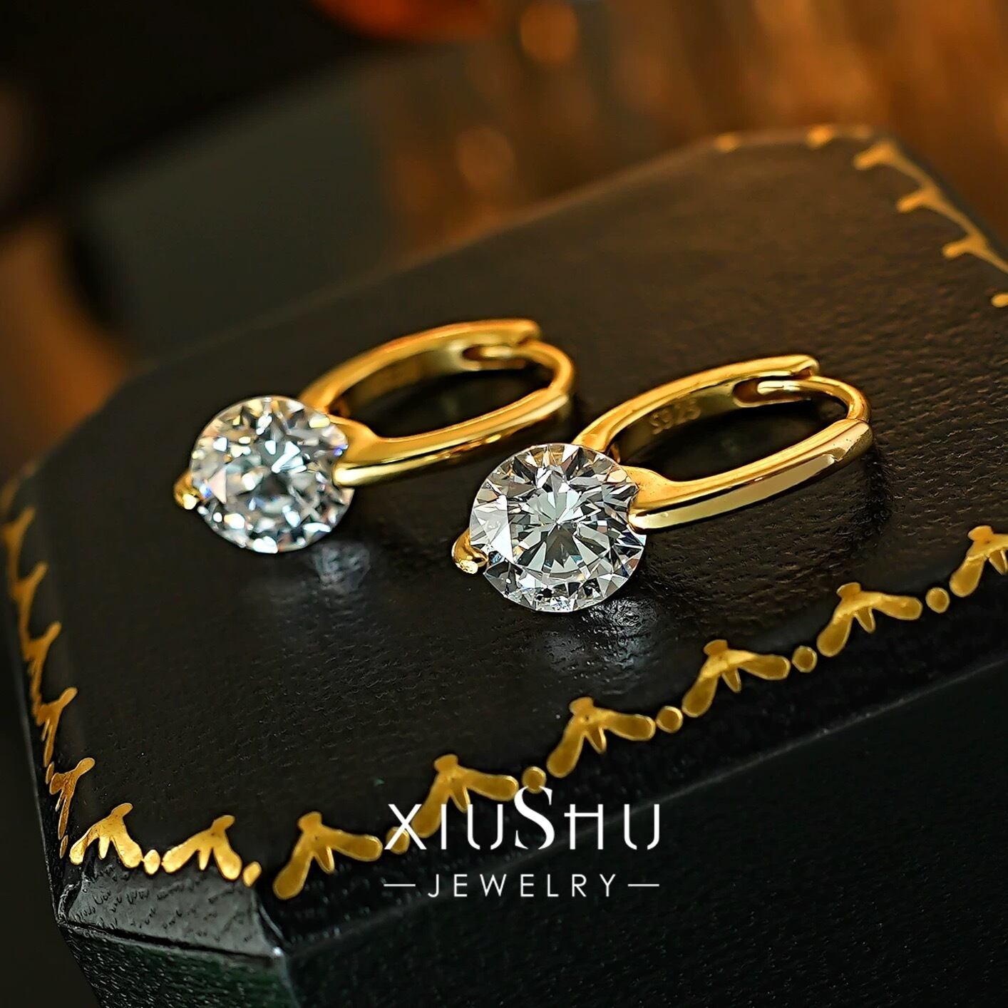 1.5ct ラウンド 高炭素ダイヤモンド ホワイト キラキラ ゴージャス ハイカーボンダイヤモンド シルバー925 ソリティアピアス 1粒 一粒 フープピアス イエローゴールドメッキ | キラキラゴージャスジュエリーのXIUSHU(シュシュ)