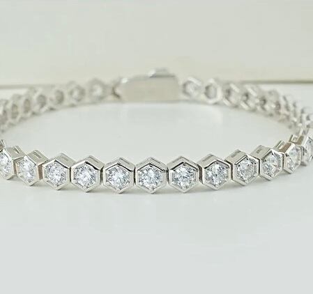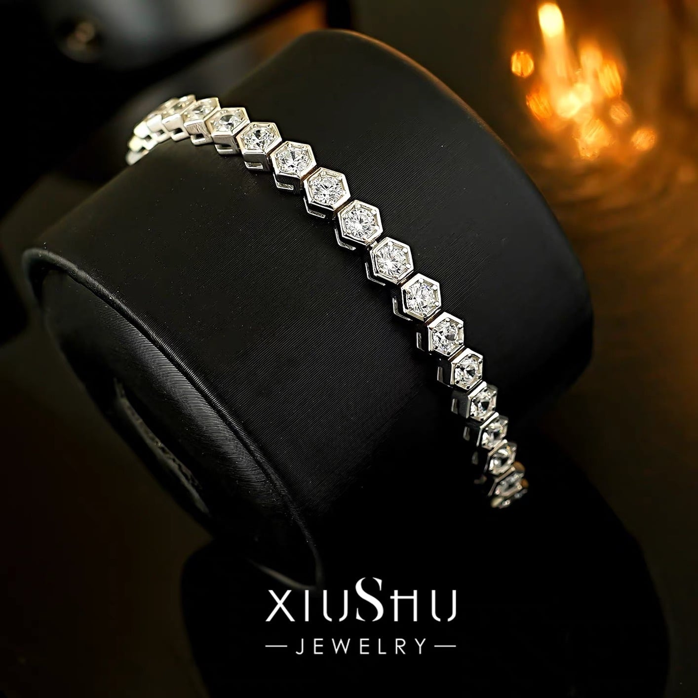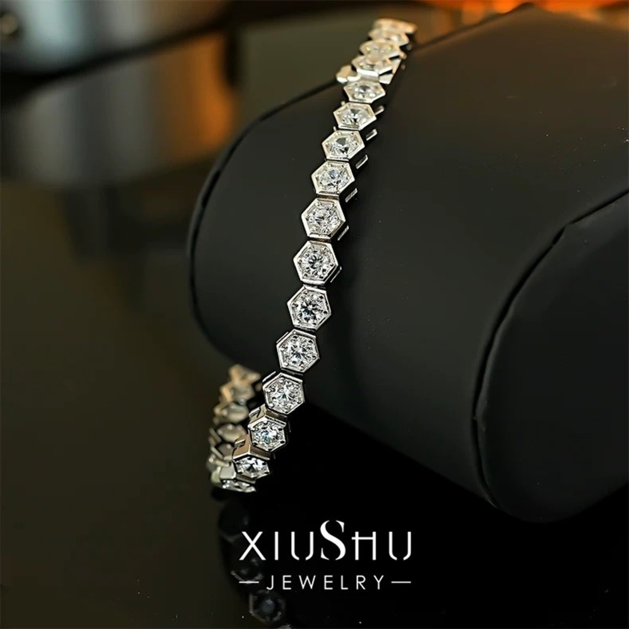 ハニカム 六角形 エタニティブレスレット 高炭素ダイヤモンド キラキラ ゴージャス ラグジュアリー シルバー925 高炭素ダイヤモンド 蜂の巣 ハチの巣 ホワイト | キラキラゴージャスジュエリーのXIUSHU(シュシュ)