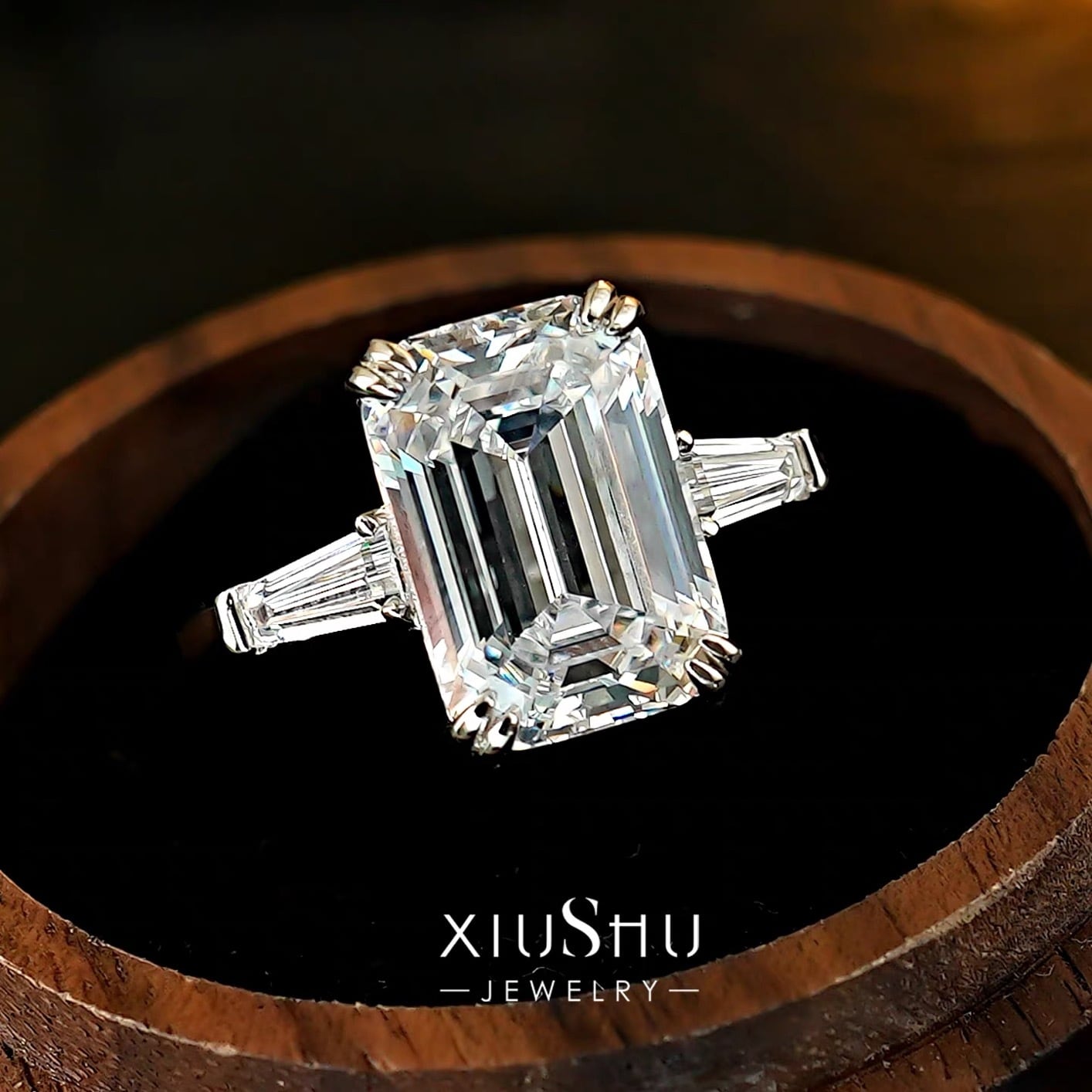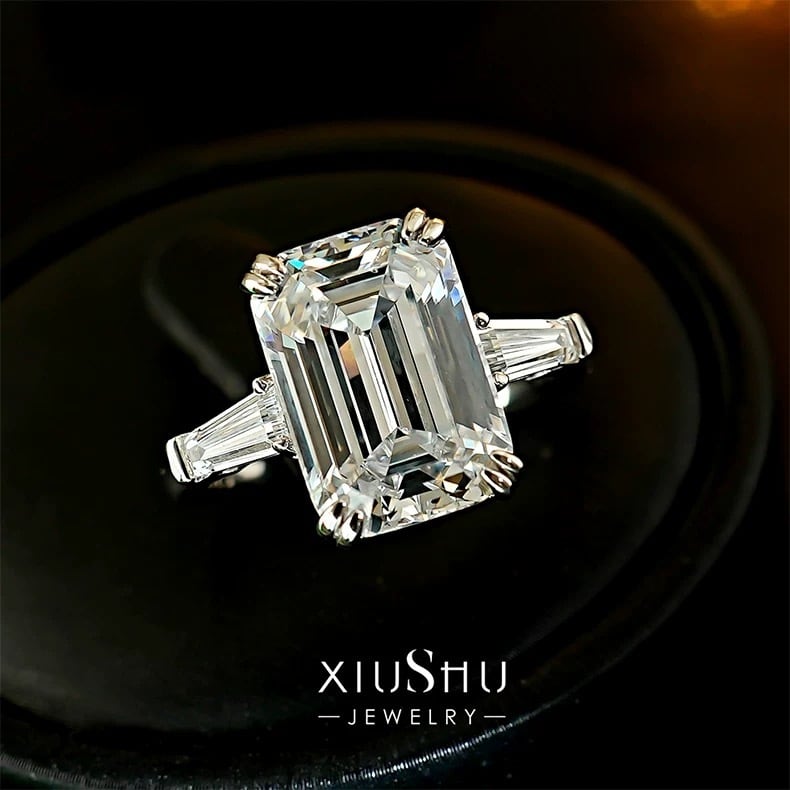 8ct エメラルドカット リング 高炭素ダイヤモンド キラキラ ゴージャス 指輪 ハイカーボンダイヤモンド ホワイト エンゲージリング ビッグ ラージ 大きい S925 シルバー925 長方形 大きめ | キラキラゴージャスジュエリーのXIUSHU(シュシュ)