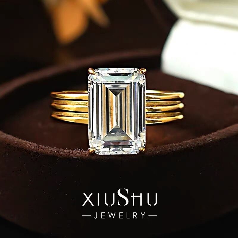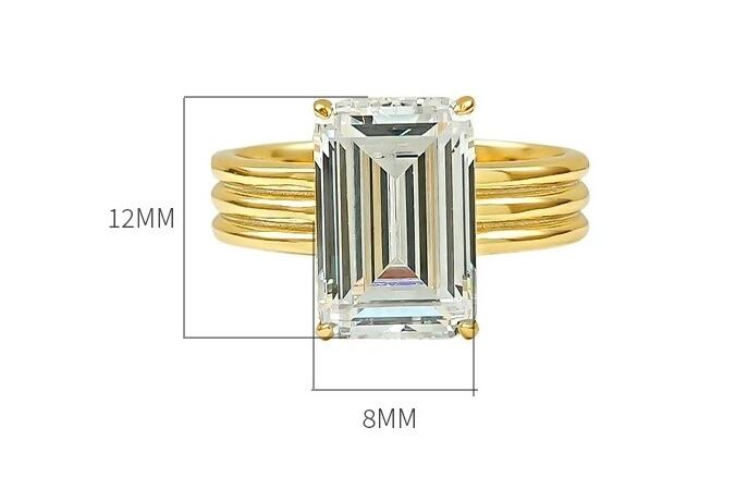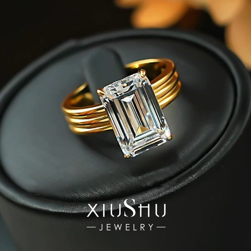 5ct エメラルドカット リング 高炭素ダイヤモンド キラキラ ゴージャス 指輪 ハイカーボンダイヤモンド ホワイト ビッグ ラージ 大きい S925 シルバー925 長方形 大きめ イエローゴールドメッキ クール ワイドリング ソリティアリング 1粒 レトロ | キラキラゴージャスジュエリーのXIUSHU(シュシュ)