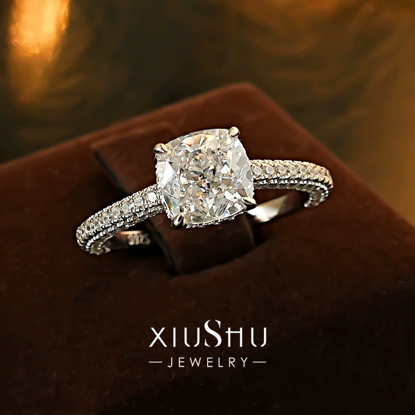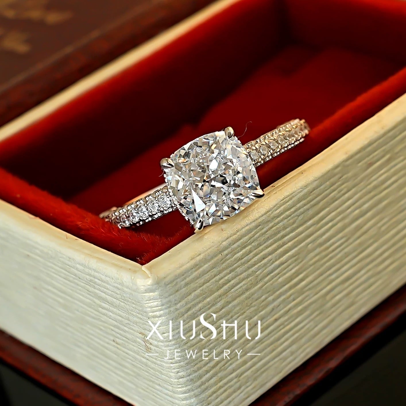 2ct ラディアントカット リング 高炭素ダイヤモンド キラキラ ゴージャス 指輪 ハイカーボンダイヤモンド ホワイト エンゲージリング S925 シルバー925 ラウンド メレタイプ | キラキラゴージャスジュエリーのXIUSHU(シュシュ)