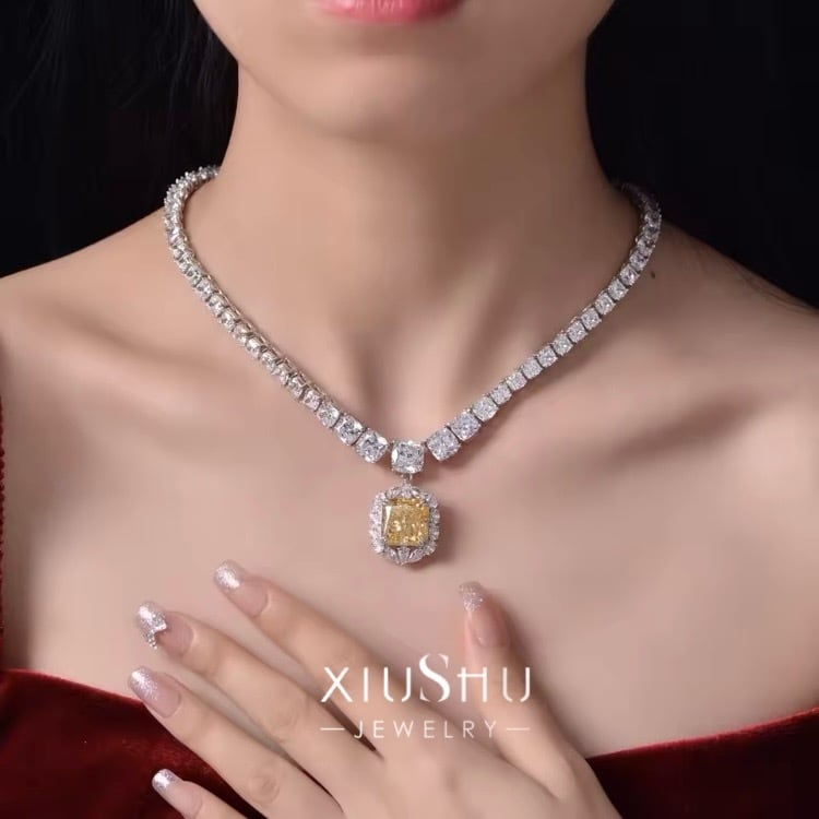 イエロー スクエア 約13×13mm 高炭素ダイヤモンド ホワイト キラキラ ゴージャス ハイカーボンダイヤモンド シルバー925 カラフル ラグジュアリー ヘイローネックレス レトロ フルエタニティネックレス 黄色 ビッグ ラージ 高級感 フラワー 花