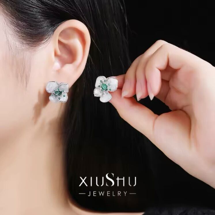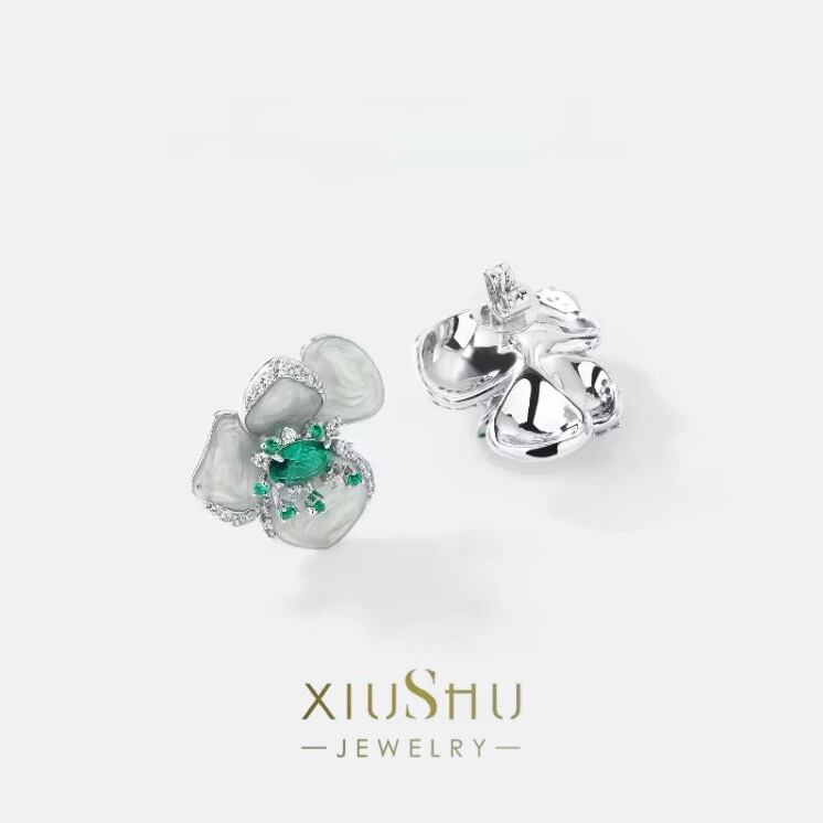 人工エメラルド フラワー オーバル 高炭素ダイヤモンド キラキラ ラグジュアリー ゴージャス スタッドピアス ハイカーボンダイヤモンド 緑 花 シルバー925 レトロ グリーン 人工宝石 春 華やか | キラキラゴージャスジュエリーのXIUSHU(シュシュ)