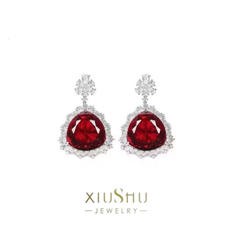 人工ルビー トライアングル フラワー 高炭素ダイヤモンド キラキラ ラグジュアリー ゴージャス スタッドピアス ハイカーボンダイヤモンド 花 シルバー925 レトロ 赤 ビッグ ラージ メレタイプ パヴェ 華やか 人工宝石 レッド ヘイローピアス