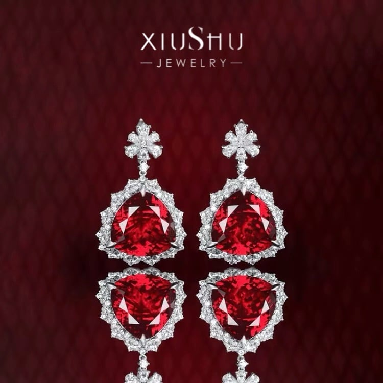 オリジナルの人工ルビーと高炭素ダイヤモンドのピアスになります。
