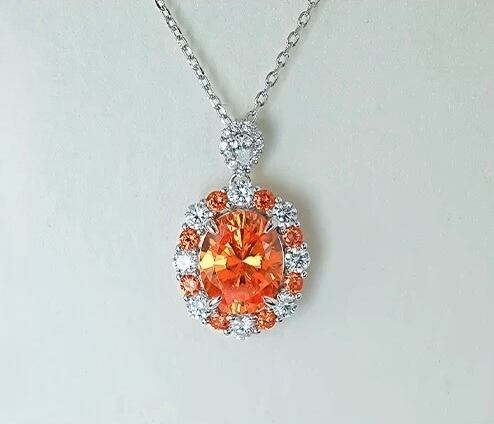 オレンジ オーバル カラフル 人工 高炭素ダイヤモンド キラキラ ゴージャス ハイカーボンダイヤモンド シルバー925 レトロ ホワイト ヘイローネックレス 人工オレンジサファイア フラワー 花 秋 レトロ | キラキラゴージャスジュエリーのXIUSHU(シュシュ)