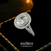 オーバル ヘイローリング 高炭素ダイヤモンド キラキラ ゴージャス 指輪 ハイカーボンダイヤモンド ホワイト エンゲージリング S925 シルバー925 メレタイプ クラシック リング | キラキラゴージャスジュエリーのXIUSHU(シュシュ)