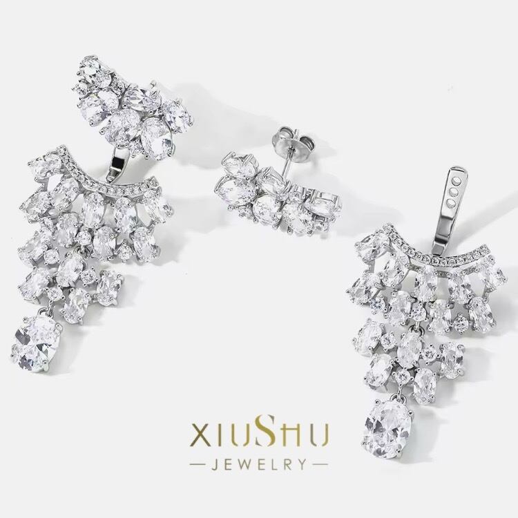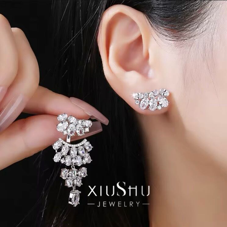 オーバル タッセル 2way 高炭素ダイヤモンド ホワイト キラキラ ゴージャス ハイカーボンダイヤモンド シルバー925 スタッドピアス ドロップ ロングピアス ぶら下がり 揺れる ダングルピアス | キラキラゴージャスジュエリーのXIUSHU(シュシュ)