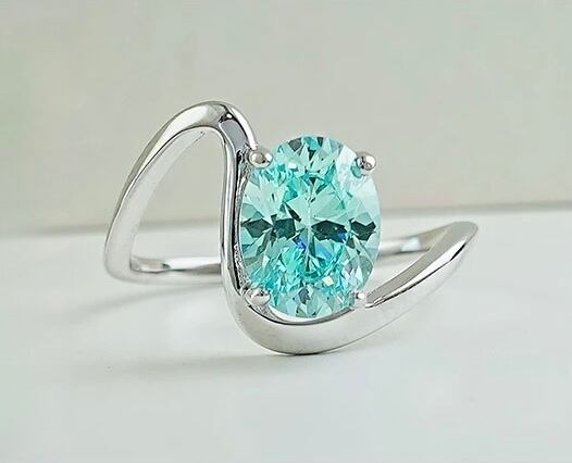 オリジナルの人工アクアマリンの高炭素ダイヤモンドのリングになります。