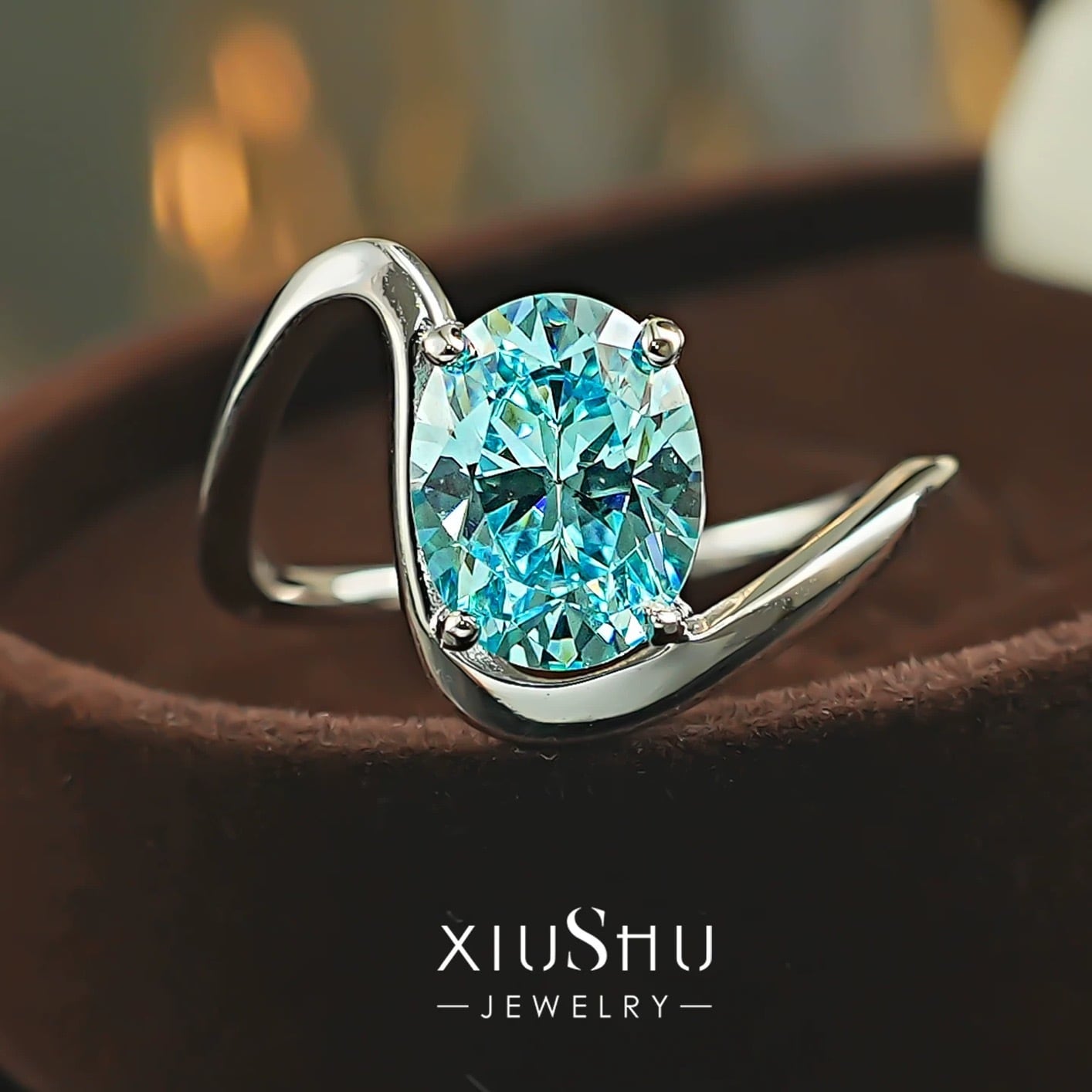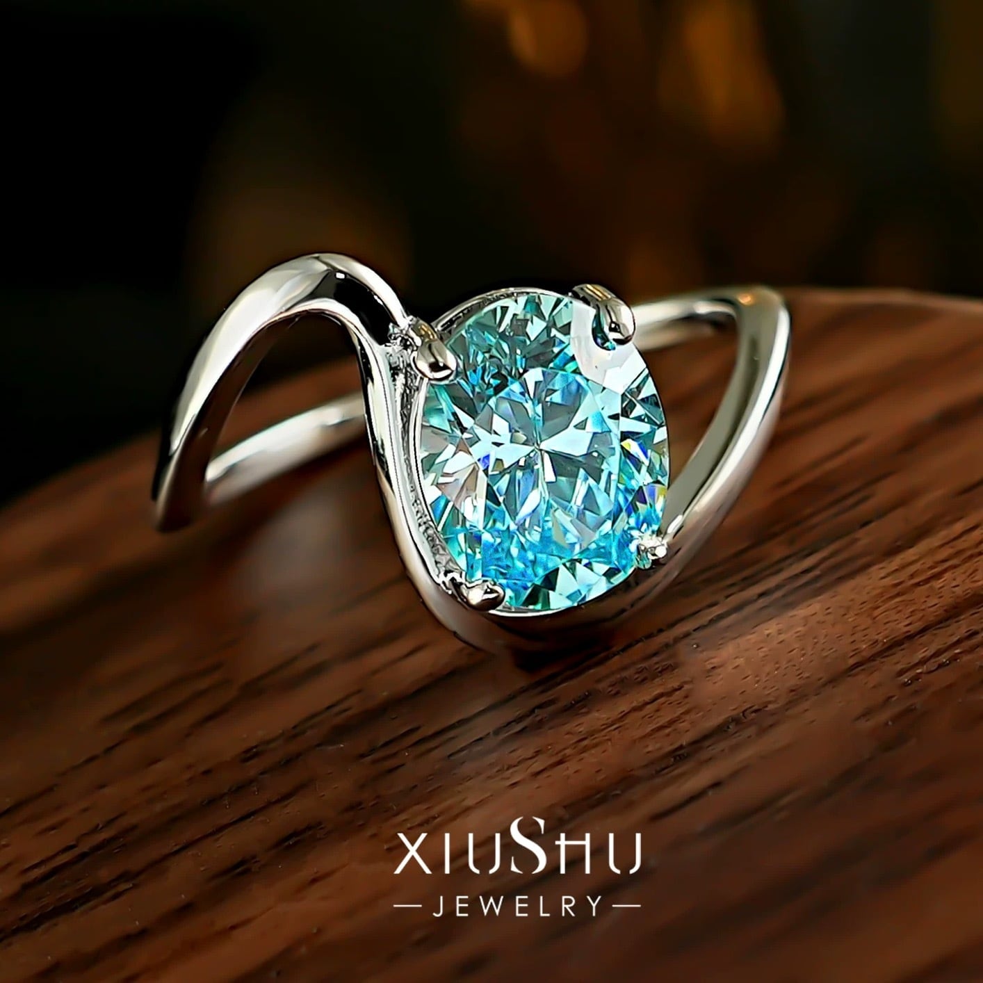 2ct 人工アクアマリン オーバル 高炭素ダイヤモンド ホワイト キラキラ ゴージャス ヘイローリング ハイカーボンダイヤモンド シルバー925 夏 ブルー レトロ 青 指輪 1粒 一粒 ソリティアリング | キラキラゴージャスジュエリーのXIUSHU(シュシュ)
