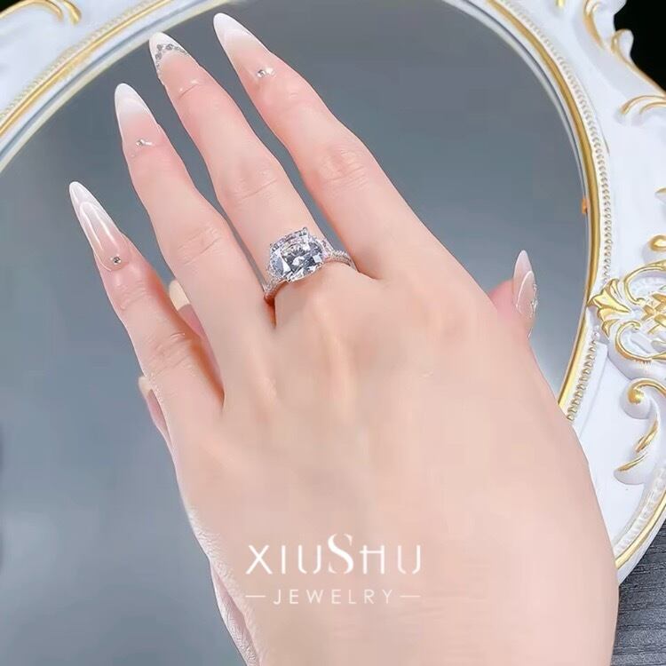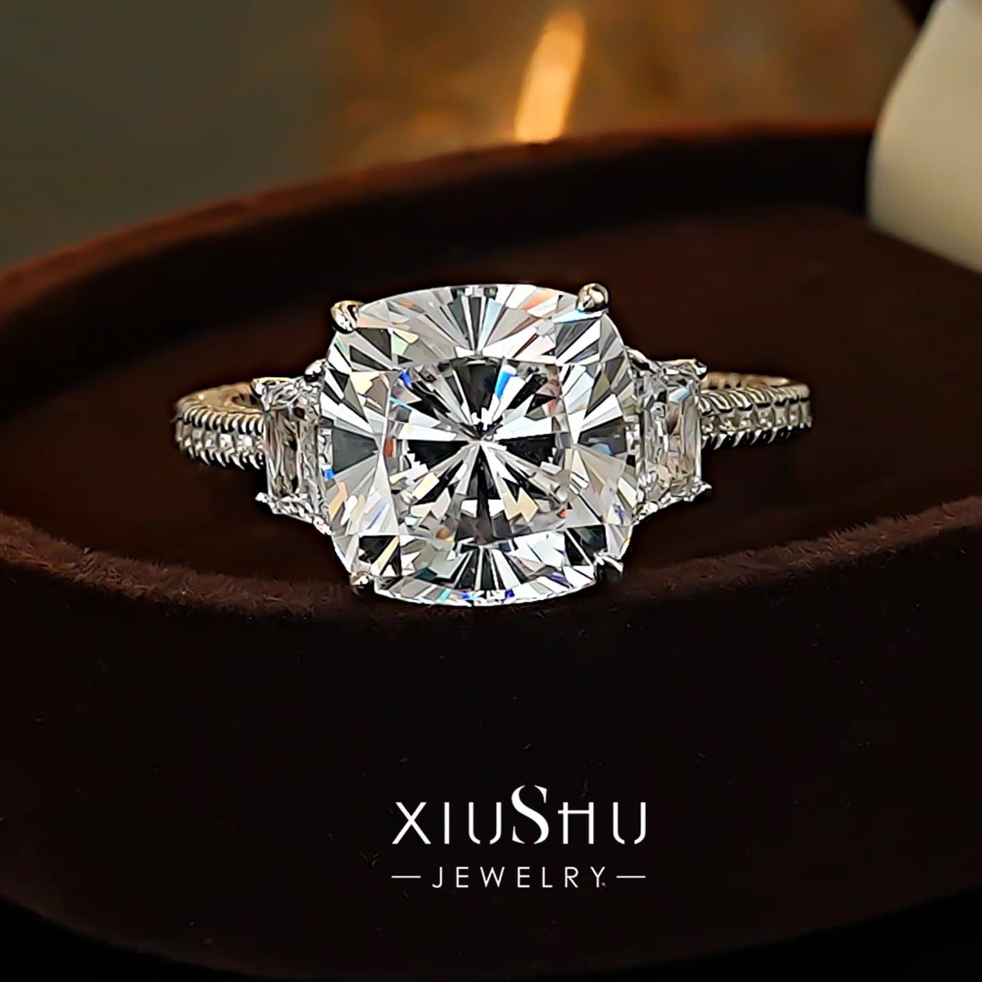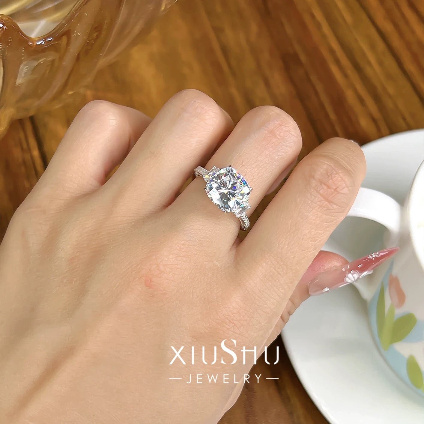 5ct クッションカット 高炭素ダイヤモンド キラキラ ゴージャス 指輪 ハイカーボンダイヤモンド ホワイト エンゲージリング ビッグ ラージ 大きい S925 シルバー925 リング | キラキラゴージャスジュエリーのXIUSHU(シュシュ)