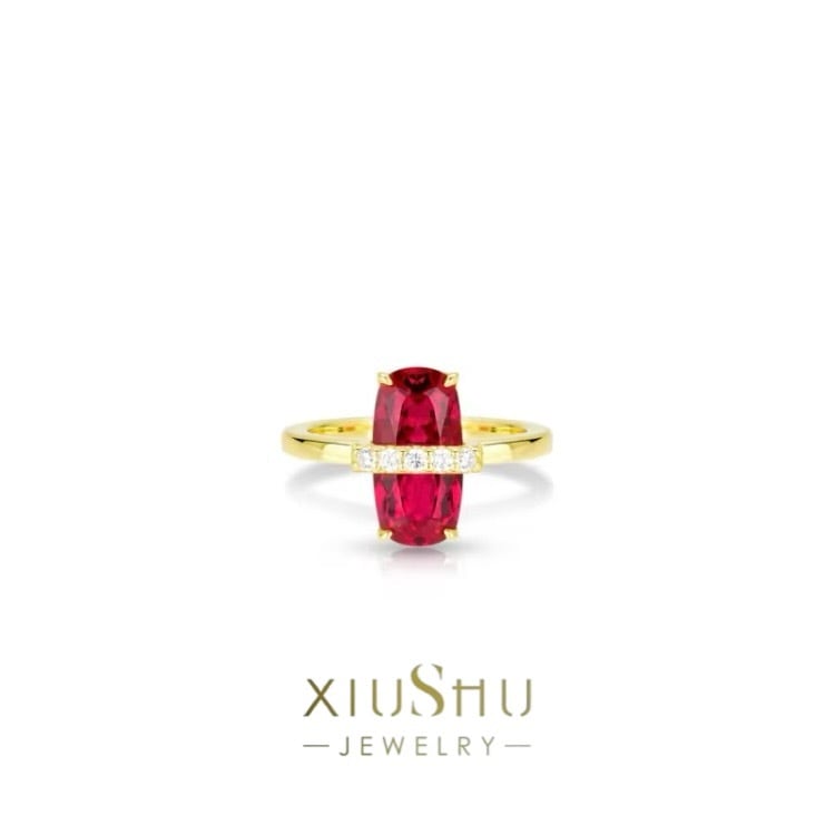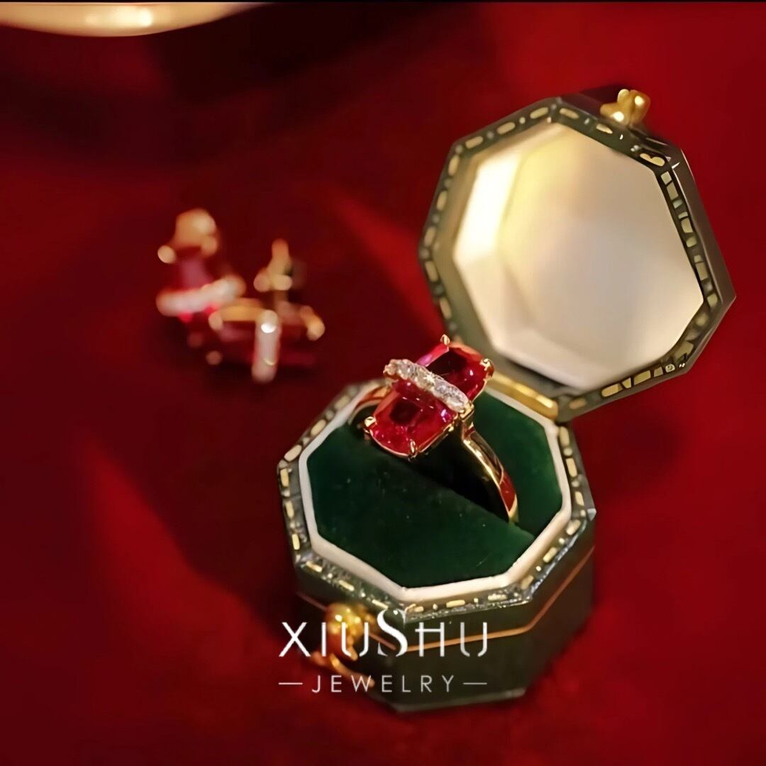 人工ルビー リング 高炭素ダイヤモンド キラキラ ゴージャス 指輪 ハイカーボンダイヤモンド ホワイト レトロ S925 シルバー925 イエローゴールドメッキ モダン 長方形 レッド ピンク | キラキラゴージャスジュエリーのXIUSHU(シュシュ)