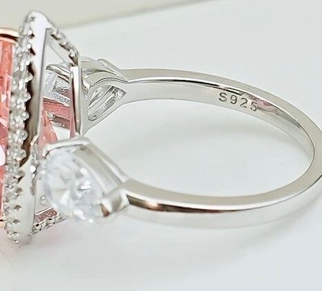 8ct 人工パパラチアサファイア ペアシェイプ 高炭素ダイヤモンド ホワイト キラキラ ゴージャス 指輪 ハイカーボンダイヤモンド ビッグ シルバー925 大きい リング ドロップ ピンク オレンジ ヘイローリング | キラキラゴージャスジュエリーのXIUSHU(シュシュ)