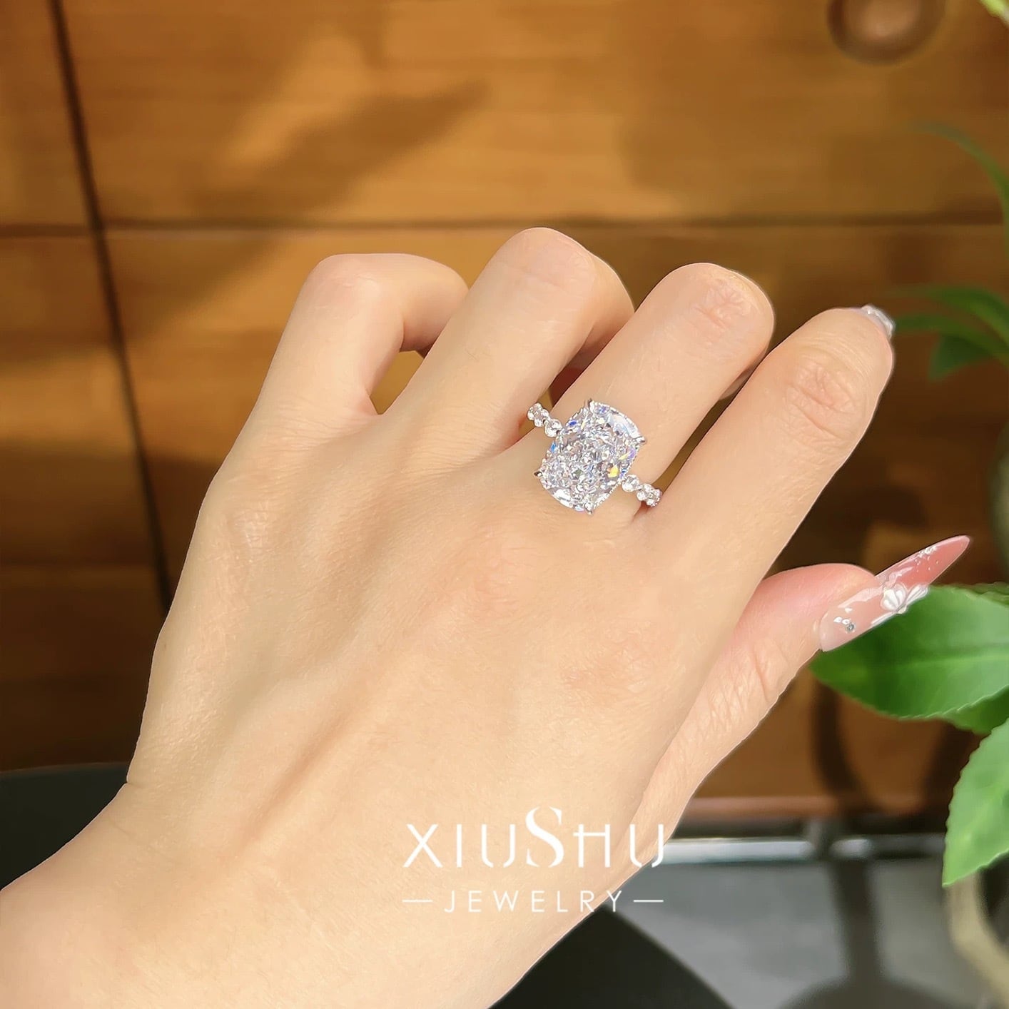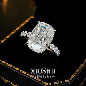 10ct オーバル 高炭素ダイヤモンド ホワイト キラキラ ゴージャス 指輪 ハイカーボンダイヤモンド ビッグ シルバー925 大きい リング クール 1粒 メレタイプ ウェディング | キラキラゴージャスジュエリーのXIUSHU(シュシュ)