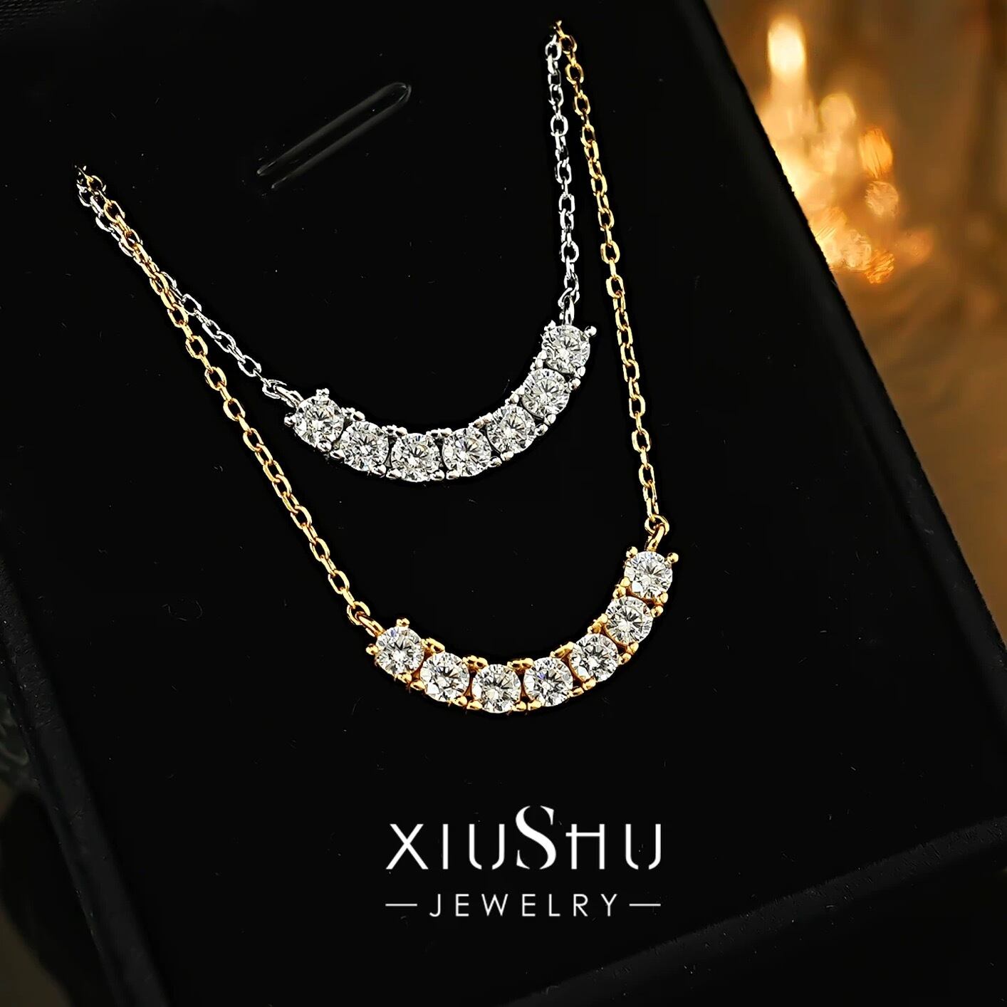 Uシェイプ ラウンド エタニティネックレス 高炭素ダイヤモンド ホワイト キラキラ ゴージャス ハイカーボンダイヤモンド シルバー925 ホワイト カーブ イエローゴールドメッキ | キラキラゴージャスジュエリーのXIUSHU(シュシュ)